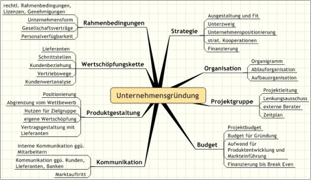 Die Gründung eines neuen Unternehmens ist ein komplexes Unterfangen, bei dem unterschiedliche Aufgaben nahezu zeitgleich erledigt werden müssen. Neben der eigentlichen Ausgestaltung des späteren Leistungsangebotes mit Produktgestaltung, Wettbewerbsvorteilen und der Preisgestaltung sowie der Erstellung eines aussagekräftigen Business Plans sind organisatorische Aufgaben wie die Festlegung der späteren Rechtsform zu erledigen. Der Business Plan muss einerseits wahrheitsgemäß die Situation beschreiben, andererseits visionär die weitere Entwicklung aufzeigen. Es empfiehlt sich, die Planung bottom-up, vom einzelnen Produkt ausgehend zu gestalten und die Top-down-Betrachtung vom Gesamtmarkt auf das eigene Vorhaben in erster Linie zur Plausibilitätsprüfung durchzuführen.